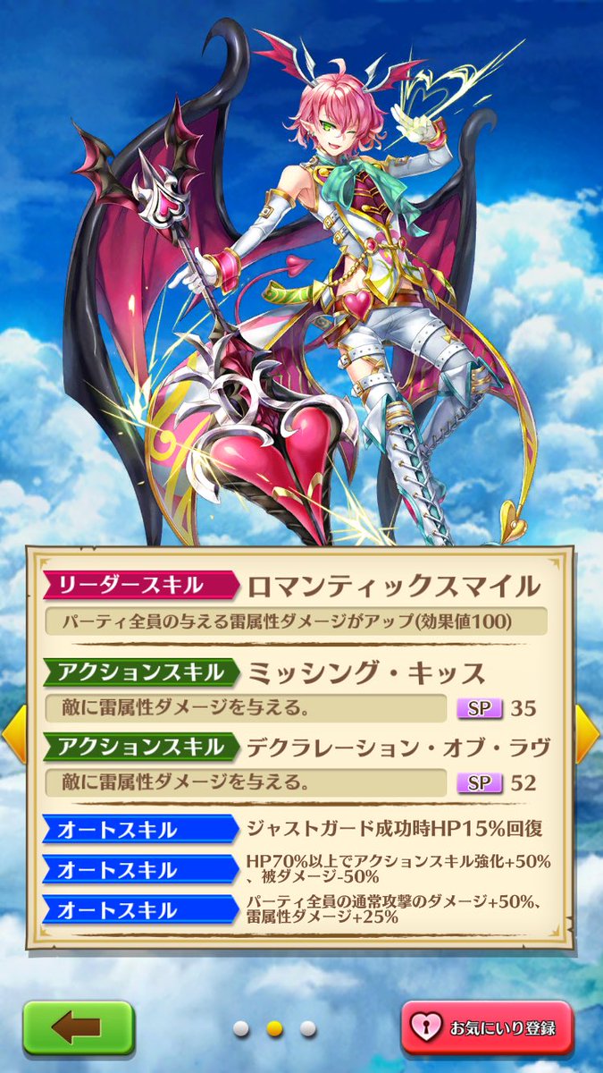 白猫プロジェクトのリバイバル3ソロプレイ動画です。 使用キャラ ︎エクセリア、シエラ シエラは今回スキル2の方を多めに使いました。スキル2の火力はなかなかあるので、ほぼメインで使うと思い白猫プロジェクトの白猫フォースター13thで登場した星4のアーチャー「ラヴィ」です。 スキルやステータスなど使い勝手を評価していきます。 白猫プロジェクトの白猫フォースター13thで登場したラヴィです。 カスミに続き人気が出そうな面立ちのキャラ ホストのリーダースキル反映か全クラスに効果あるのが喜ばれるのかな ぐえー・・・建てるときにキャラに気を使うのやだよう 俺の4凸ミキちゃんリーダーで輝くわ まぁ今までリーダースキルなしだったんだし自分に効果ないリーダースキルでも全然気にならないな 回復量アップいいよね